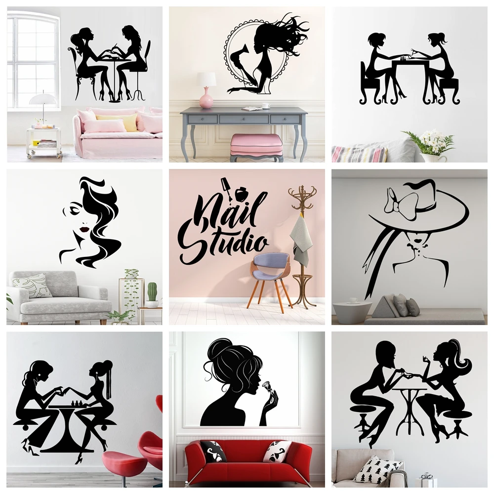 Beauty Salon Nail Hair Salon Vinyl Wall Sticker Decor For Salon Shop Decoration Removable Waterproo