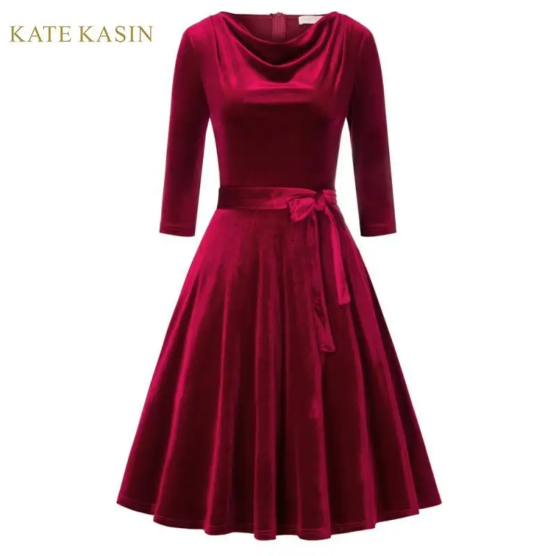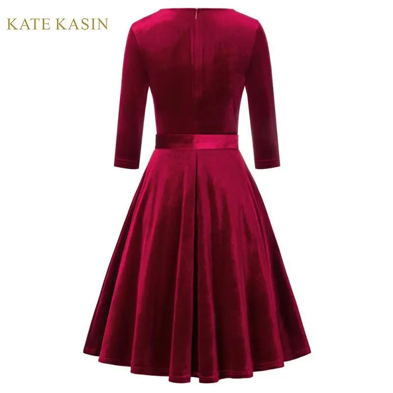Buy Kate Kasin 2019 Autumn 3/4 Sleeve Velvet Swing Belt Dress Vintage Style Women Slim A-Line Pleated M Price will be rise up at any time without notification and I cant guaranted that the stock is still available tommorow or next hour. So Please Save It Now!