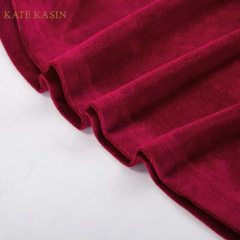 Kate Kasin 2019 Autumn 3/4 Sleeve Velvet Swing Belt Dress Vintage Style Women Slim A-Line Pleated M