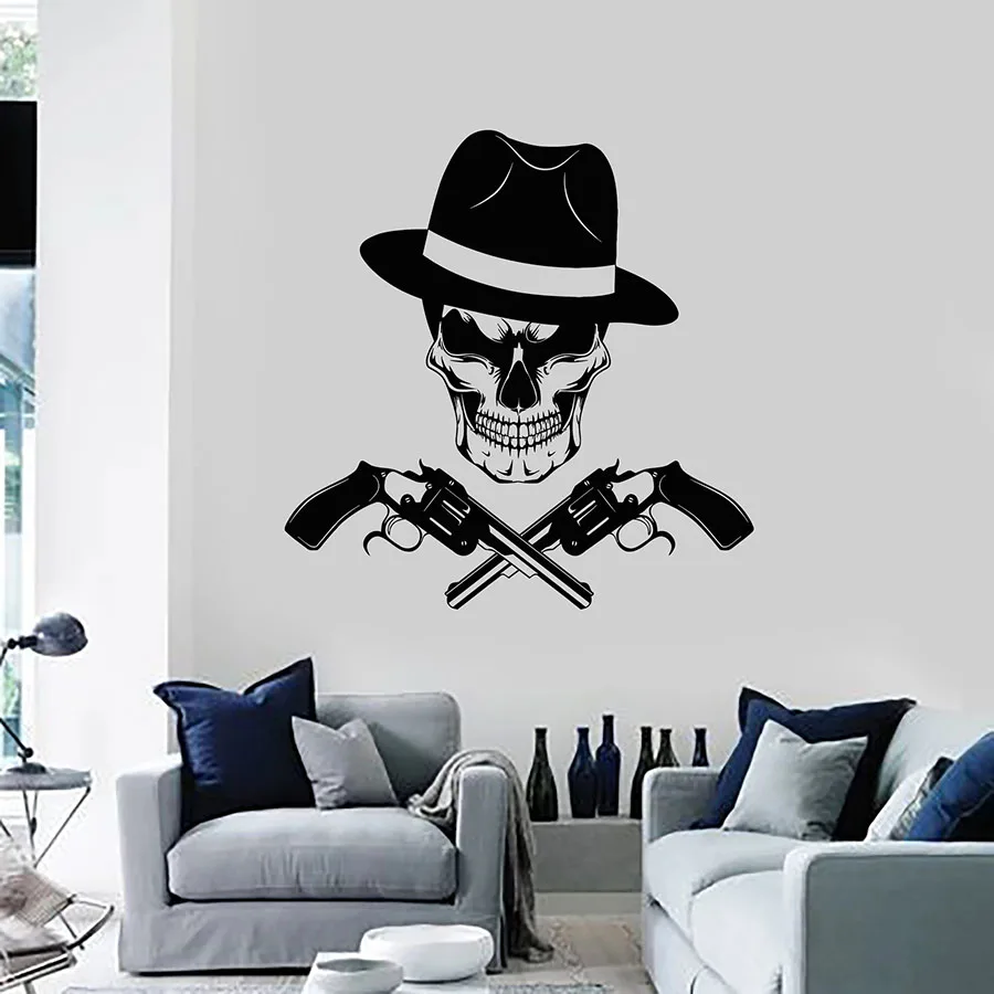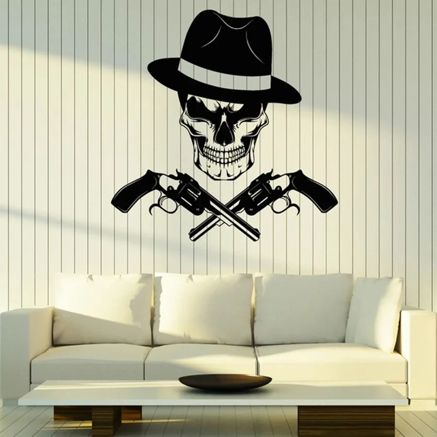 Skull Head Wall Decal Death Gangster Guns Hat Mafia Cool Style Vinyl Window Stickers Bedroom Man Ca