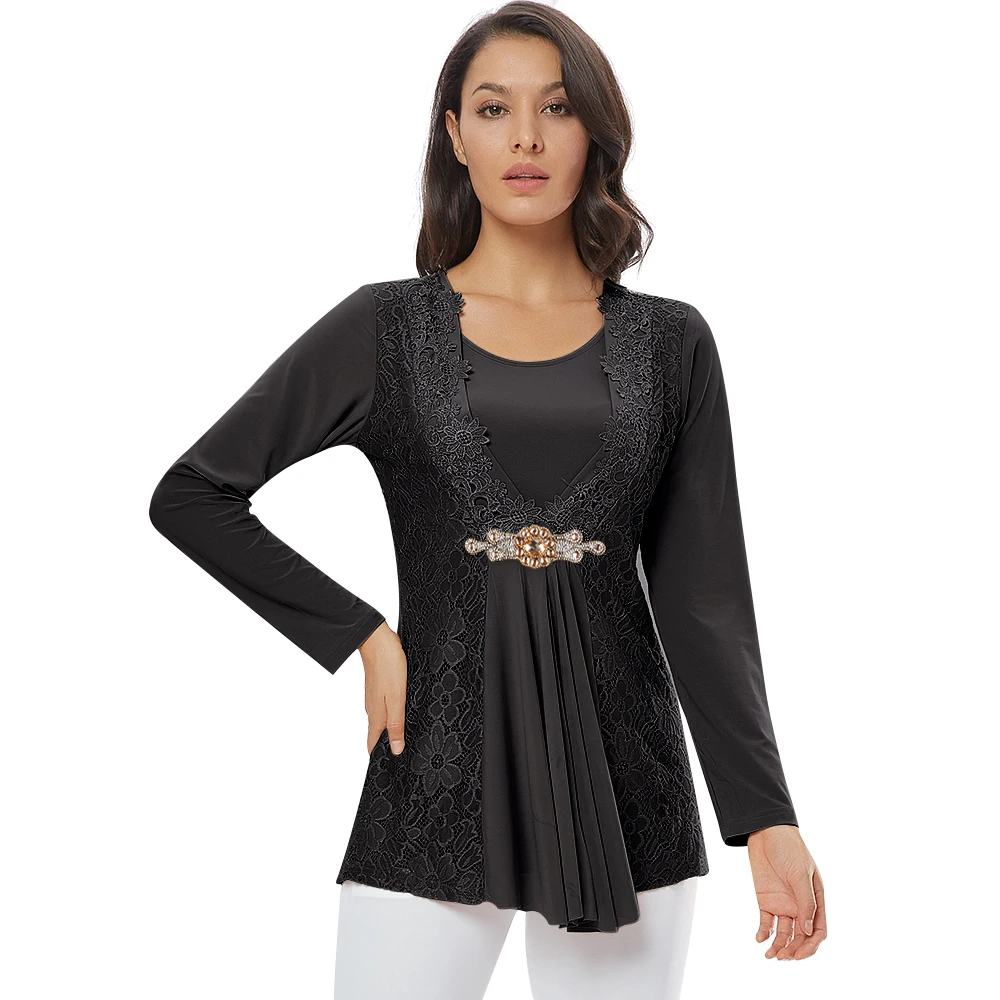 YTL Plus Size Women Blouse Elegant Diamond Lace Tunic Top Casual Vintage Tops Long Sleeve Shirt Red Black XXL XXXL 4XL 8XL H025