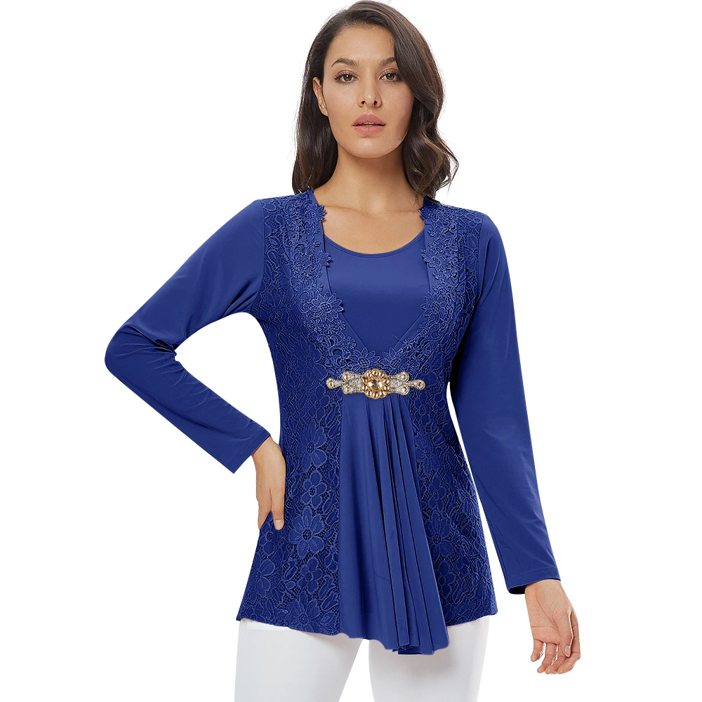 YTL Women Vintage Blouse Long Sleeve Diamond Flowy Chic Lace Tops Casual Style Elegant Multi-color