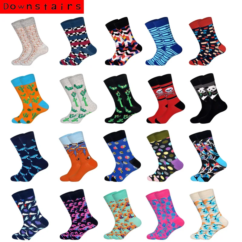 Best Seller Downstairs 21 Color Men's Socks Fashions Lattice Cactus Sea Wave Casual Originality Pattern British
