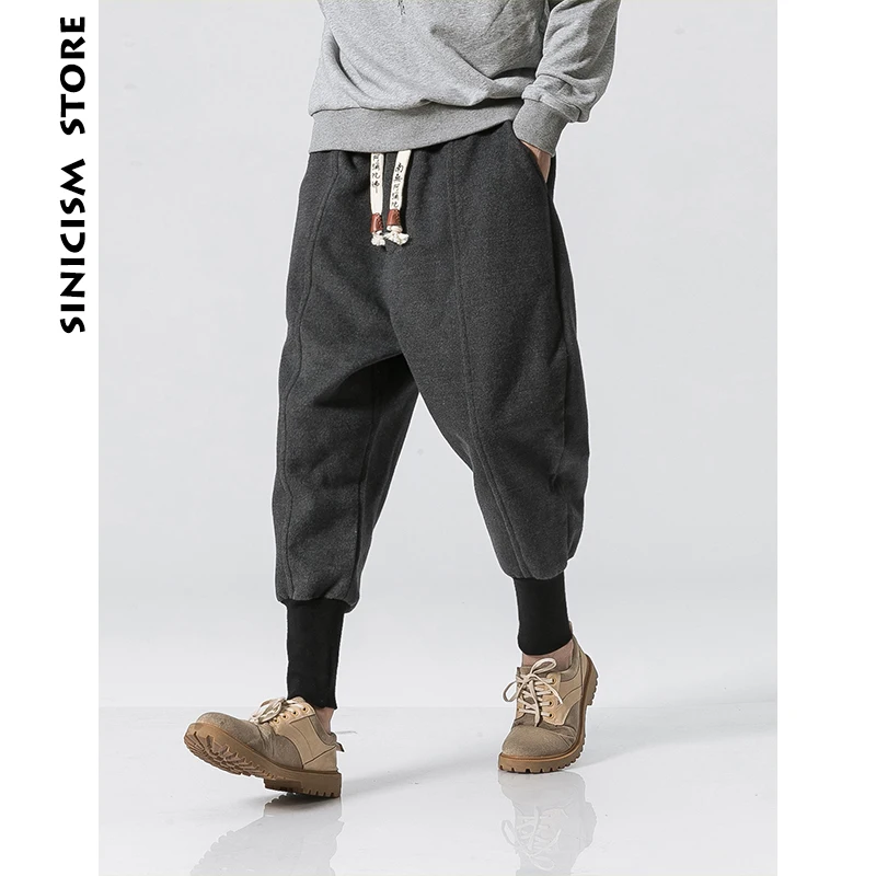 Sinicism Store Men Winter Thicken Wool Harem Pants Men's Chinese Style Warm Oversize Trousers Male 2019 Japan Casual Plaid Pant
