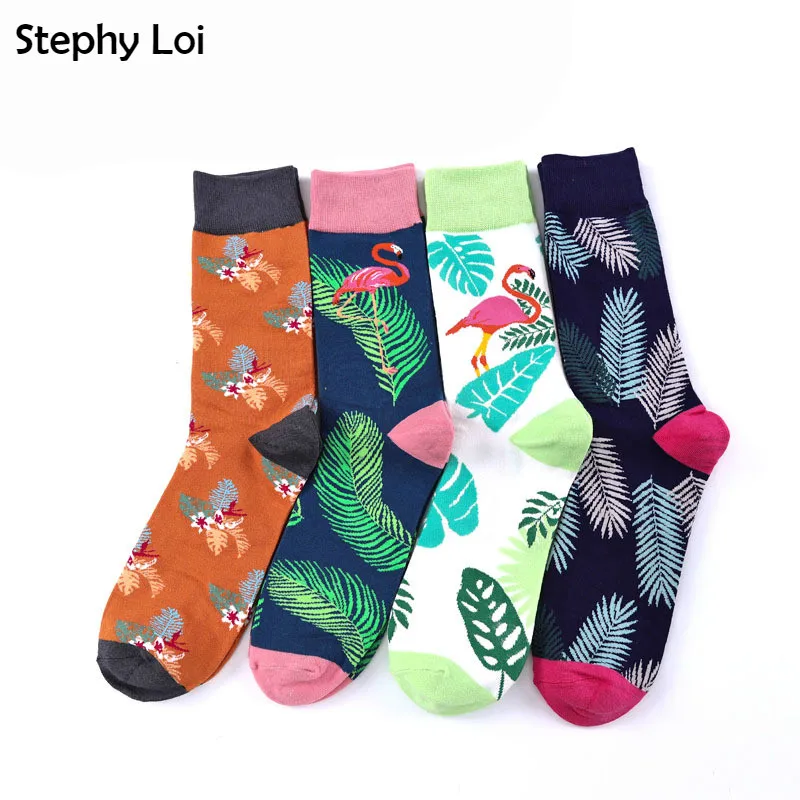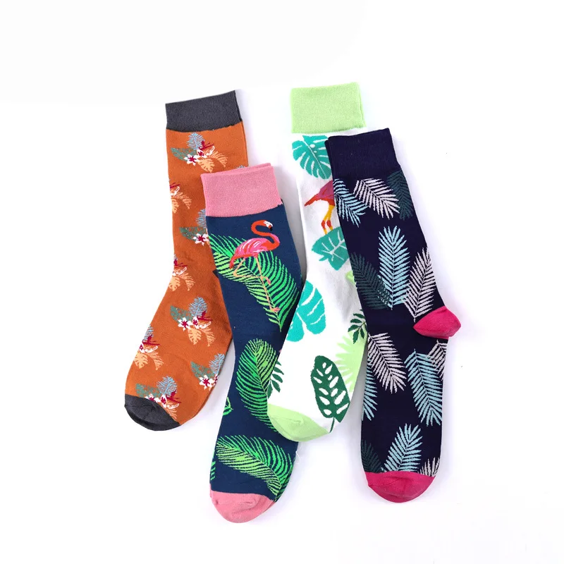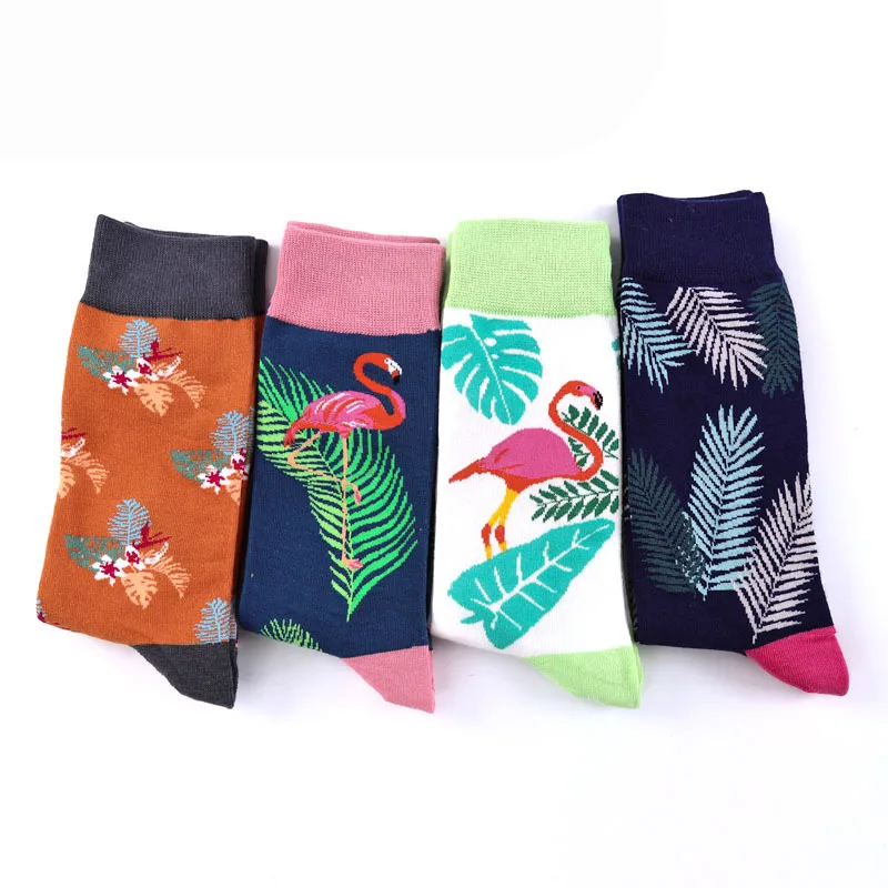 New Arrival Cotton Men Crew Socks flamingo leaf Pattern Hip Hop British Style Casual Harajuku Desig