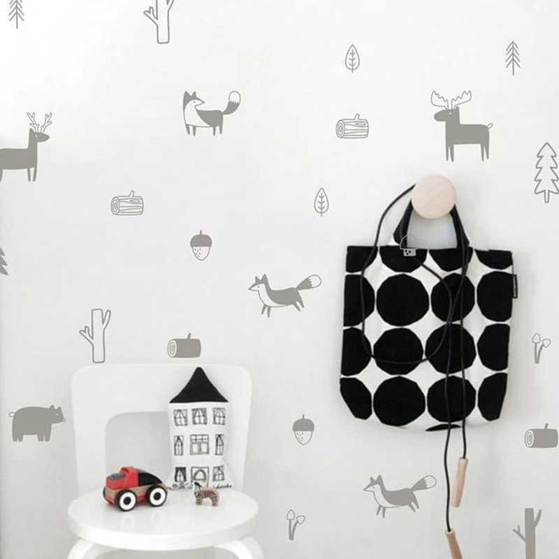 Nordic Style Forest Animal Wall Decals Woodland Tree Nursery Vinyl Art Wall Stickers Children Room