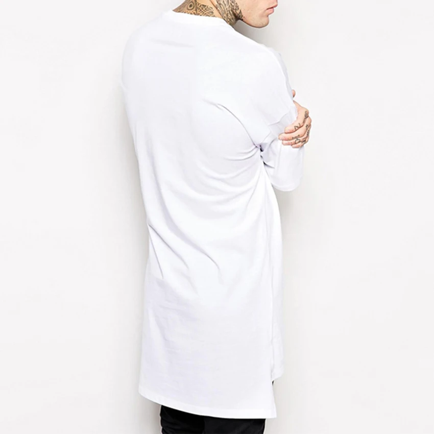 New arrival Hip Hop Style Clothing Mens Casual Long T Shirt Irregular Hem Extended Length Tees Side Split Solid