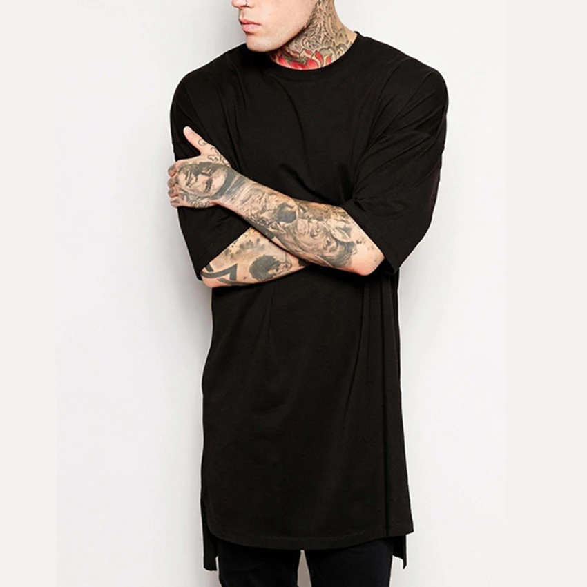 Premium Price of Hip Hop Style Clothing Mens Casual Long T Shirt Irregular Hem Extended Length Tees Side Split Solid